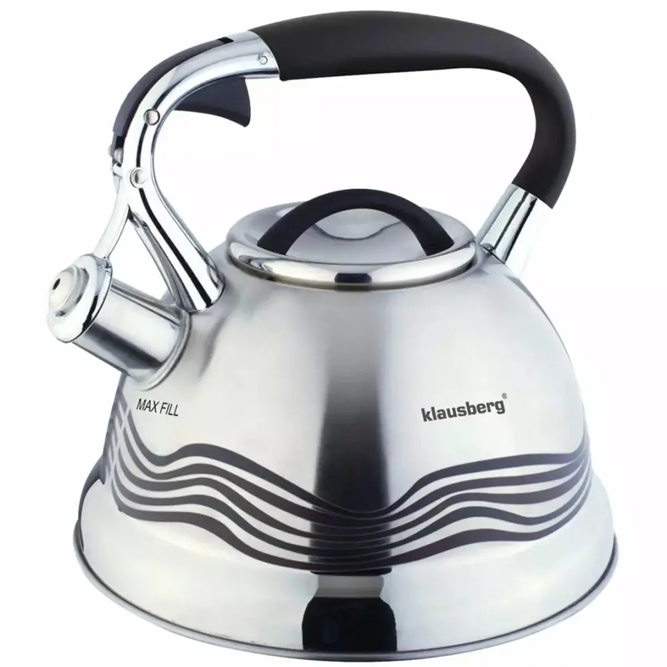 Czajnik z gwizdkiem został wykonany z wysokiej jakości stali nierdzewnej.