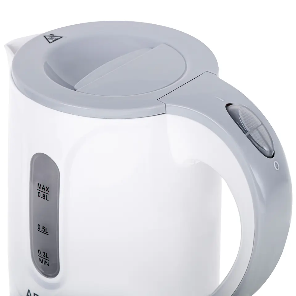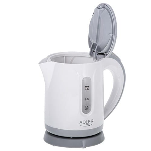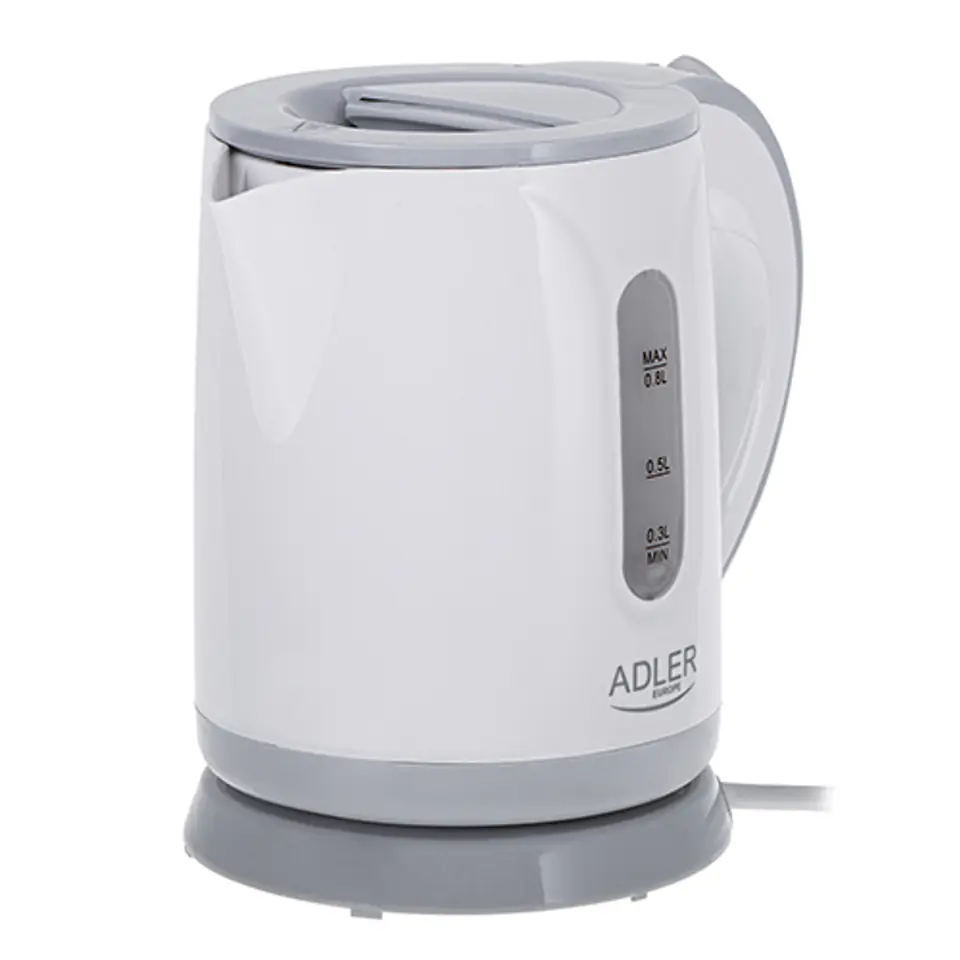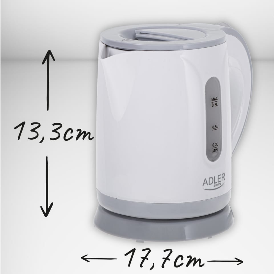 Czajnik Adler AD 1371g elektryczny, 850 W, 0,8 l, stal nierdzewna/polipropylen, podstawa obrotowa 360°, biały/szary