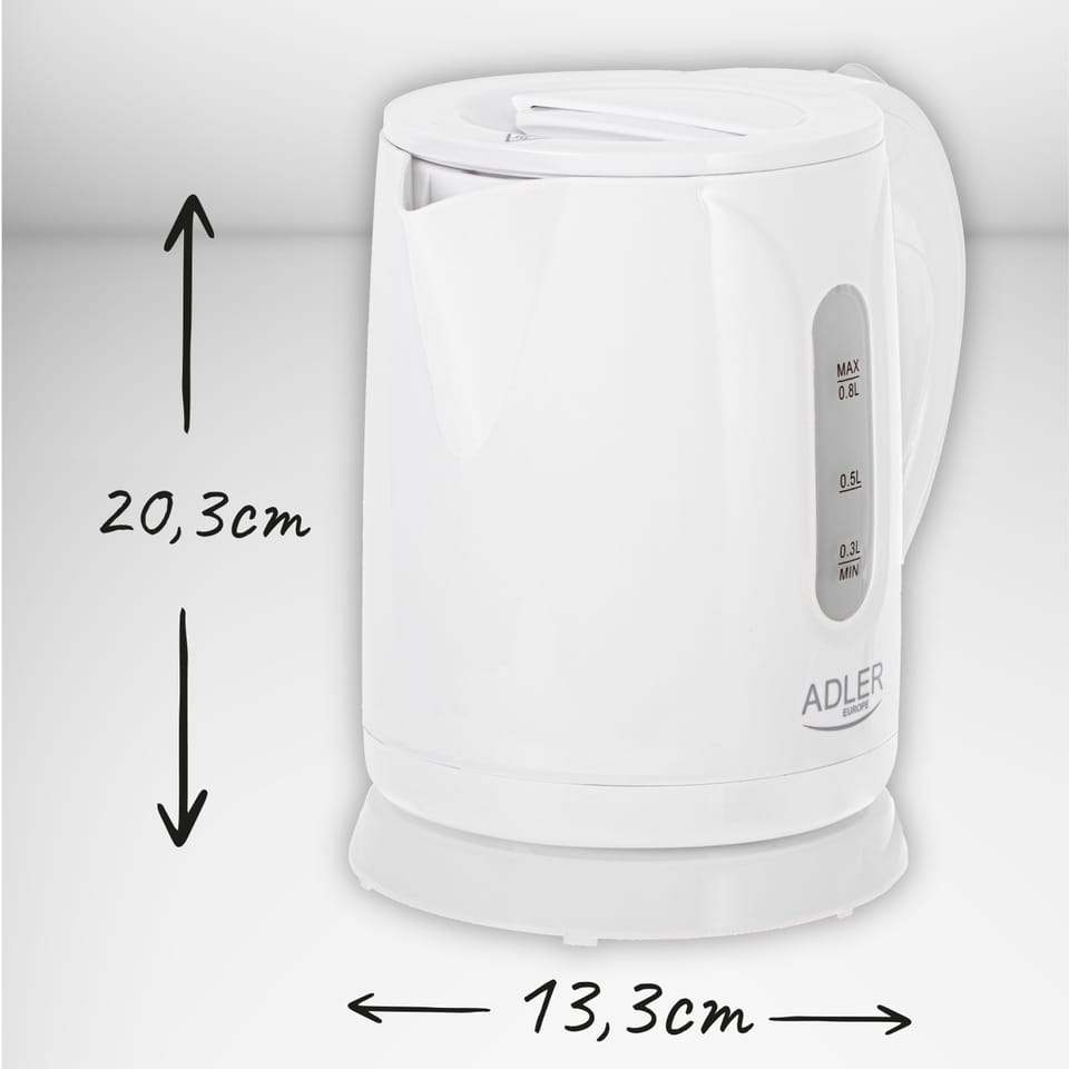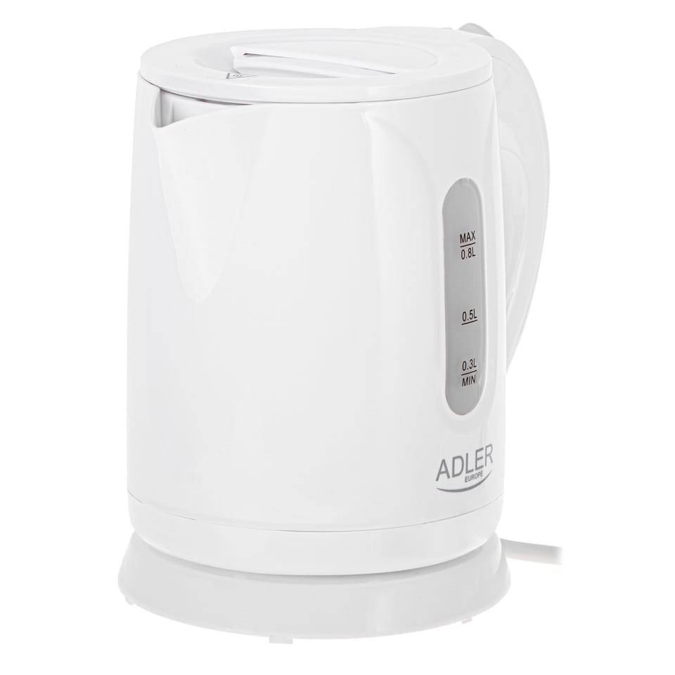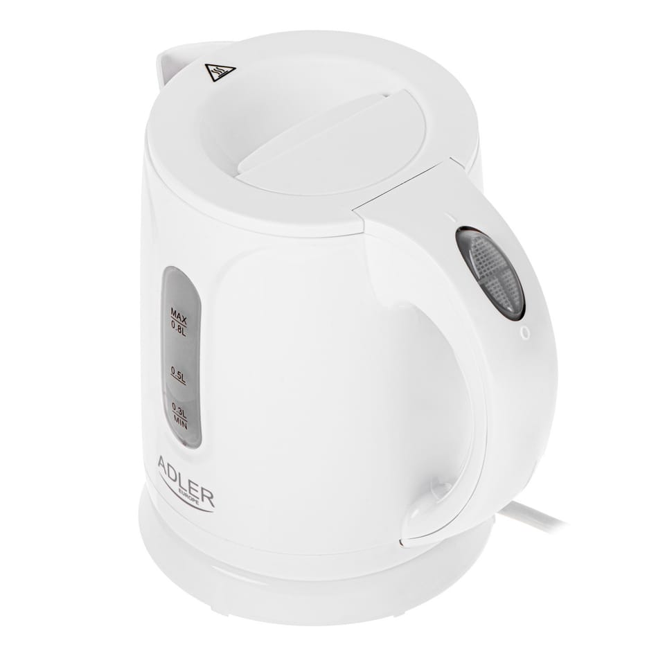 Czajnik Adler AD 1371w elektryczny, 850 W, 0,8 l, stal nierdzewna/polipropylen, podstawa obrotowa 360°, biały
