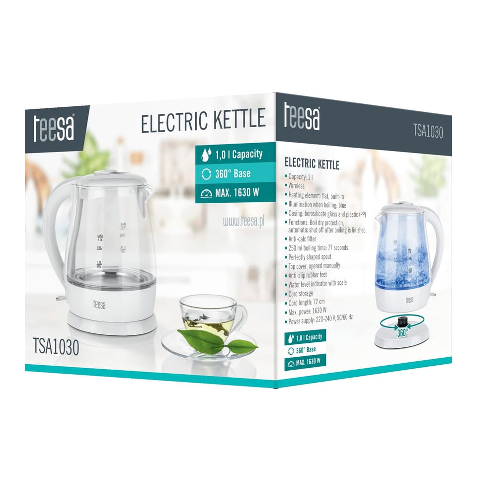 Bezprzewodowy czajnik elektryczny TSA1030 Jeśli w zasięgu Twojego zainteresowania jest czajnik turystyczny na działkę czy biwak lub kompaktowy czajnik do małej kuchni , TSA1030 ze względu na swoją funkcjonalność przypadnie Ci do gustu.