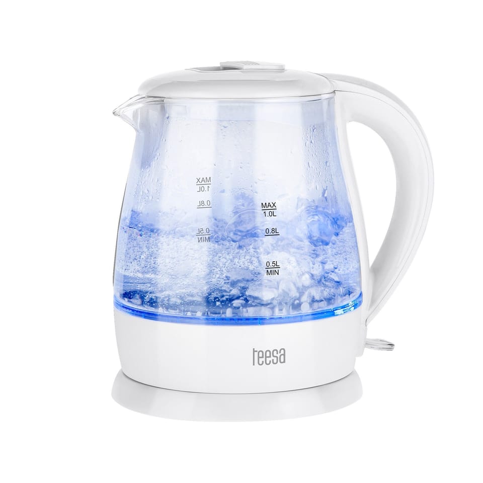 Ten mały czajnik o pojemności 1 l sprawi, że Twoja kuchnia nabierze charakteru. Szklany czajnik bezprzewodowy z podświetleniem w kolorze niebieskim, które przypomina o gotującej się wodzie, nada pomieszczeniu nowoczesności. Tym bardziej, że masz do wyboru model w kolorze czarnym lub białym.