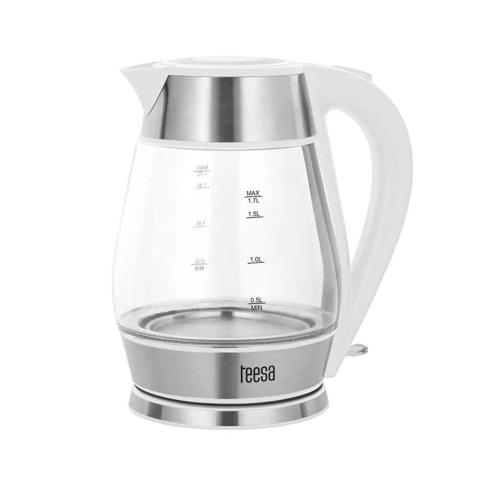 Bezprzewodowy czajnik elektryczny TSA1512W Jeśli Twoja głowę zaprząta pytanie jaki wybrać czajnik elektryczny czy tradycyjny , polecamy Ci model TSA1512. Ten szklany czajnik o dużej pojemności 1,7 l i mocy 2200 W , pozwala na szybkie zagotowanie wody na gorący napój dla całej rodziny. Jeśli natomiast masz ochotę na samotny wieczór przy filiżance ulubionej herbaty, zastosowana w czajniku bezprzewodowym Teesa płaska grzałka umożliwia także zagotowanie niewielkiej ilości wody.