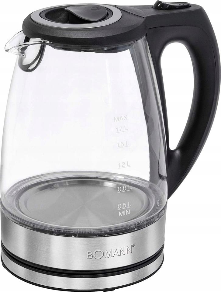Elegancki, szklany, wysokiej jakości. Bezprzewodowy czajnik, który będzie dobrze się prezentował w każdym wnętrzu. Świetnie ozdobi nowoczesną kuchnię i stylowe biuro. 1,7 litra pojemności. Żaroodporne szkło dzbanka zamykane dla bezpieczeństwa. Automatyczne wyłączanie i wydajna, niezawodna grzałka ukryta pod spodem ze stali nierdzewnej.