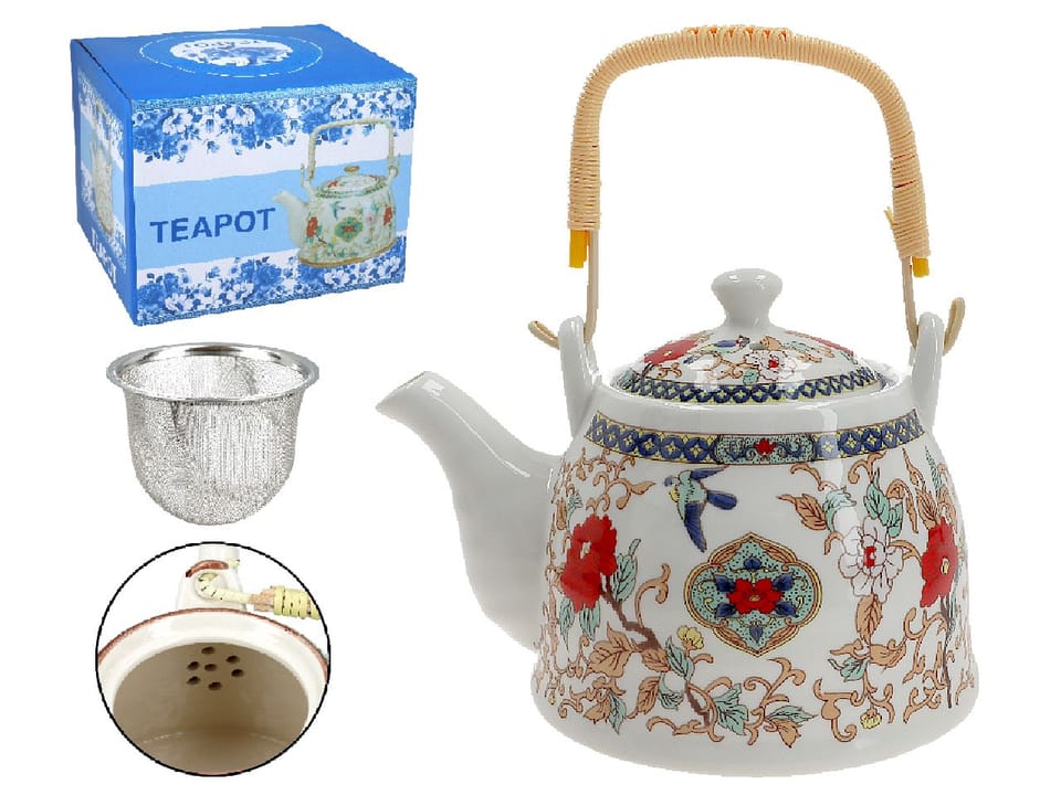 Gustowny, ceramiczny czajnik z metalowym zaparzaczem. Dostępny w kilku atrakcyjnych wzorach i kolorach. Ceramiczny czajnik utrzymuje temperaturę zaparzonej herbaty na długo.