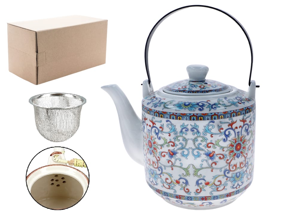 Gustowny, ceramiczny czajnik z metalowym zaparzaczem. Dostępny w kilku atrakcyjnych wzorach i kolorach. Ceramiczny czajnik utrzymuje temperaturę zaparzonej herbaty na długo.