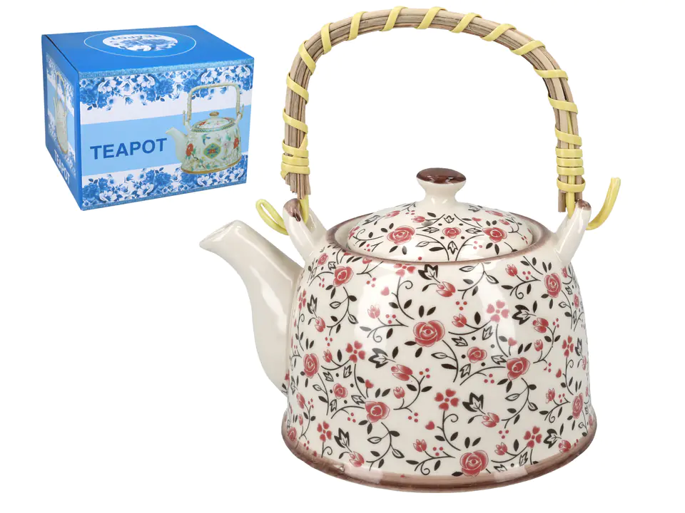Gustowny, ceramiczny czajnik z metalowym zaparzaczem. Dostępny w kilku atrakcyjnych wzorach i kolorach. Ceramiczny czajnik utrzymuje temperaturę zaparzonej herbaty na długo.