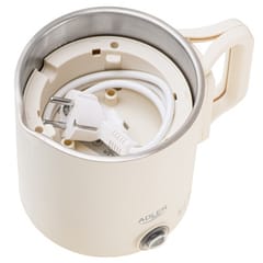 - Możliwość przechowywania podstawy wewnątrz czajnika oraz składany uchwyt to oszczędność miejsca w bagażu
