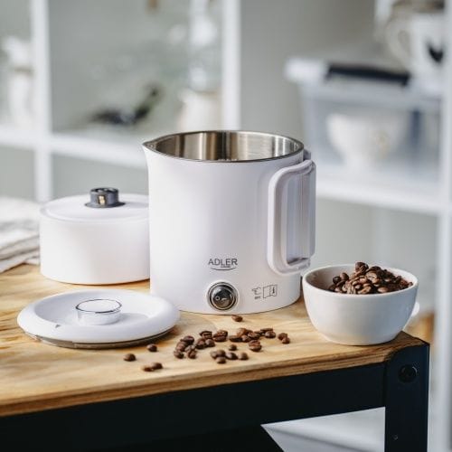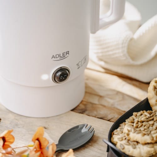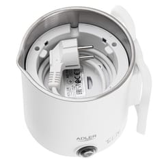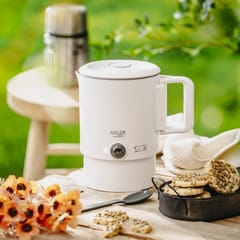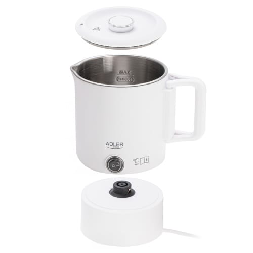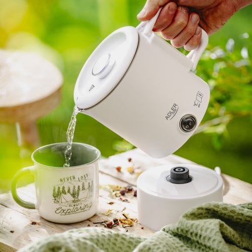 - Możliwość przechowywania podstawy wewnątrz czajnika oraz składany uchwyt to oszczędność miejsca w bagażu