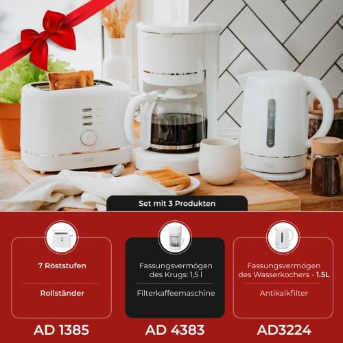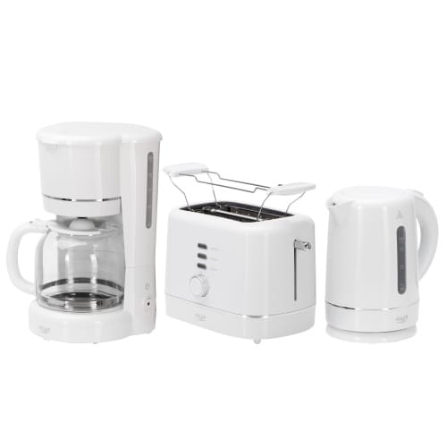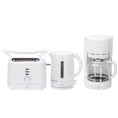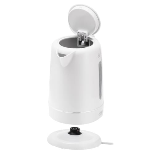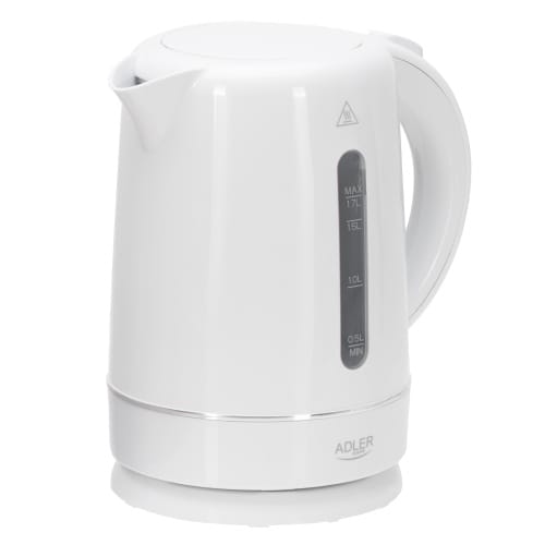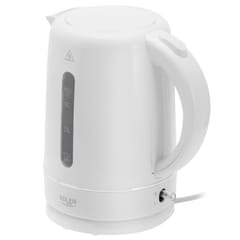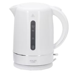 Czajnik elektryczny • Czajnik plastikowy• Pojemność max: 1,7 L• Pojemność min: 0,5 L• Płaska grzałka ze stali szlachetnej• Zabezpieczenie przed gotowaniem bez wody• Przycisk otwierający pokrywkę• Filtr zatrzymujący osady wapnia• Wskaźnik poziomu wody z podziałką• Automatyczne wyłączanie • Obrotowa podstawa 360°• Schowek na przewód zasilający• Wymiary produktu: 23.5 x 22.5 x 15.0cm• Kolor: biały• Typ wtyczki: E/F• Długość przewodu zasilającego: 70 cm• Moc nominalna 1850W• Moc maksymalna 2200W• Zasilanie: 220-240V ~ 50-60Hz