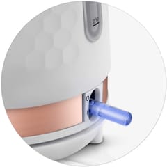 Czajnik posiada podświetlany włącznik oraz wskaźnik poziomu wody wykonany z przezroczystego materiału.