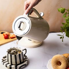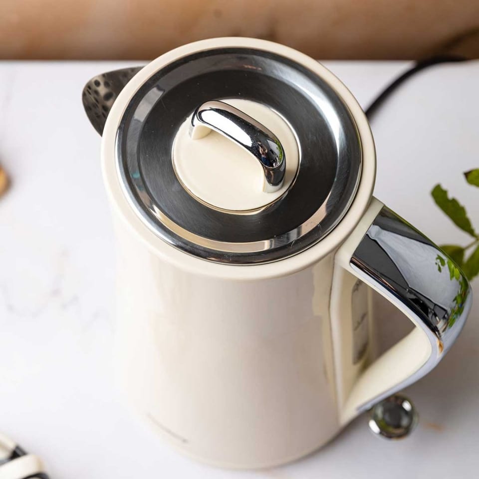 Model wyróżnia się subtelnym, kremowym kolorem oraz chromowanymi detalami, które nadają mu wyjątkowego, nowoczesnego charakteru. Dzięki dopracowanej formie i wysokiej jakości wykonania czajnik doskonale komponuje się zarówno z nowoczesnymi, jak i klasycznymi aranżacjami kuchni.