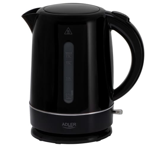 Czajnik elektryczny • Czajnik plastikowy• Pojemność max: 1,7 L• Pojemność min: 0,5 L• Płaska grzałka ze stali szlachetnej• Zabezpieczenie przed gotowaniem bez wody• Przycisk otwierający pokrywkę• Filtr zatrzymujący osady wapnia• Wskaźnik poziomu wody z podziałką• Automatyczne wyłączanie • Obrotowa podstawa 360°• Schowek na przewód zasilający• Wymiary produktu: 23.5 x 22.5 x 15.0cm• Kolor: czarny• Typ wtyczki: E/F• Długość przewodu zasilającego: 70 cm• Moc nominalna 1850W• Moc maksymalna 2200W• Zasilanie: 220-240V ~ 50-60Hz