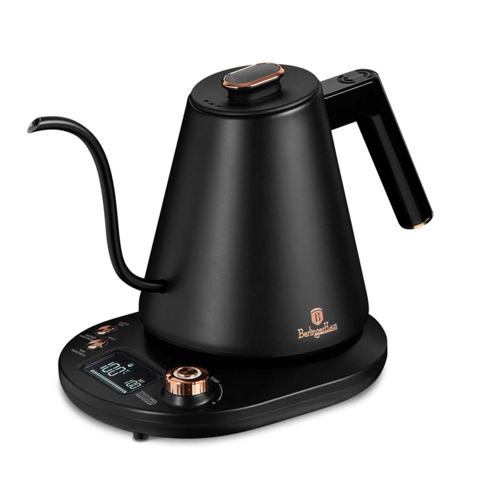Elegancki czajnik elektryczny firmy Berlinger Haus z linii Black Rose Collection. Idealnie będzie pasował do naczyń i akcesoriów kuchennych tej firmy. Designerski wygląd to niezaprzeczalny atut tego modelu. Regulacja oraz podtrzymanie temperatury to atuty tego modelu.