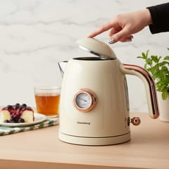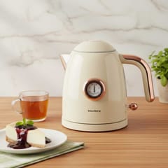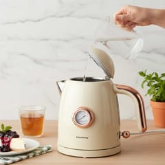 Model wyróżnia się elegancką kremową obudową w połączeniu ze złotymi detalami, które nadają mu wyjątkowego charakteru. To harmonijne zestawienie klasycznego designu i nowoczesnej funkcjonalności sprawia, że czajnik doskonale odnajdzie się zarówno w nowoczesnych, jak i tradycyjnych wnętrzach.
