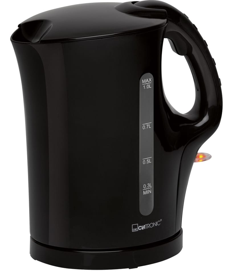 Czajnik elektryczny Clatronic WK 3462 o pojemności 1 l wyposażony jest w wygodny, ergonomiczny uchwyt. Obudowa wykonana jest z tworzywa. Czajnik bezprzewodowy posiada automatyczne wyłączenie po zagotowaniu wody oraz element grzejny ze stali szlachetnej.