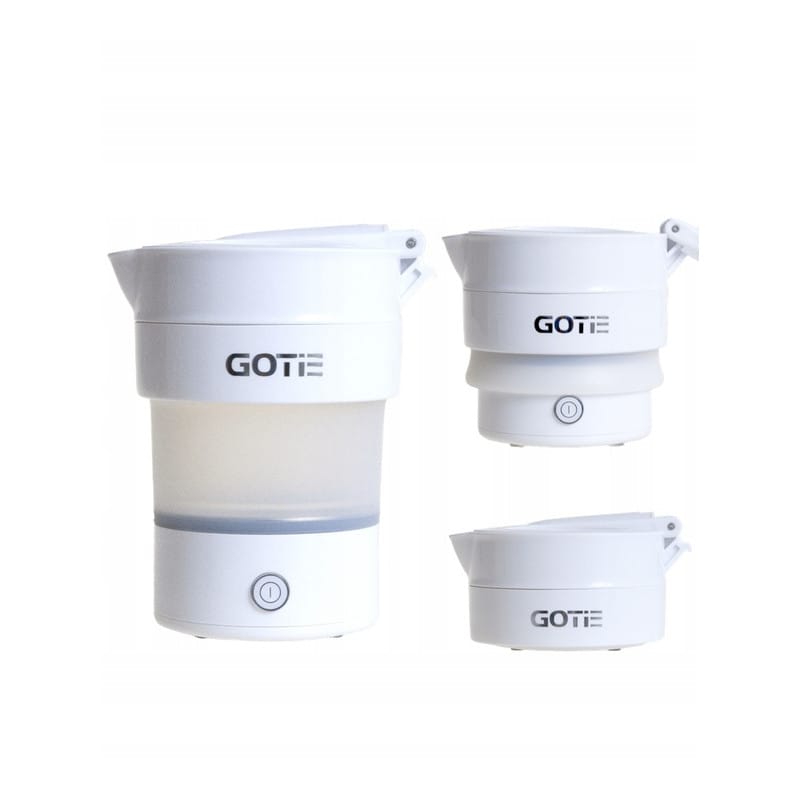 CZAJNIK TURYSTYCZNY SKŁADANYELEKTRYCZNY 0,6L SILIKONOWY MAŁYGOTIE MODEL: GCT-600B BIAŁYCzajnik turystyczny – Twój niezawodny towarzysz każdej wyprawy!Marzysz o gorącej herbacie o poranku w górach A może o aromatycznej kawie nad jeziorem Nasz czajnik turystyczny sprawi, że każda przerwa w podróży będzie chwilą relaksu. Lekki, kompaktowy i wykonany z wytrzymałych materiałów – zmieści się w każdym plecaku, a jednocześnie zagotuje wodę szybko i bezproblemowo.Idealny w podróży, na campingu, działce, wczasachSkładana obudowa oraz uchwyt ułatwiają przewożenie i przechowywanieCzajnik turystyczny GOTIE GCT-600 to idealne rozwiązanie dla osób podróżujących. Jego pojemność to 0,6 L, a moc 600 W. Sprawdzi się na campingu, pod namiotem, na działce, w hotelu, ale także w małych gospodarstwach domowych czy podczas przeprowadzek.Korpus urządzenia wykonany jest z wytrzymałego, elastycznego silikonu. Zastosowany materiał jest trwały, dzięki czemu nie grozi mu pęknięcie w trakcie użytkowania. Silikon jest w pełni bezpieczny i nie wchodzi w reakcję z wodą ani nie wydziela do niej szkodliwych substancji.Wydajny i energooszczędny czajniczek o mocy 600 W, który pozwoli szybko zagotować wodę na kawę lub herbatę.Niewielkie rozmiary i pobór mocy sprawiają, że jest on doskonałym wyborem dla osób podróżujących lub ceniących oszczędność.Optymalna mocCzajnik turystyczny GOTIE GCT-600 łączy kompaktowe wymiary i wysoką wydajność – moc 600 W pozwoli szybko zagotować wodę na herbatę czy kawę. Urządzenie jest przy tym energooszczędne.Wygoda użytkowania i czyszczeniaGrzałka ukryta jest pod wykonaną ze stali nierdzewnej płytą grzejną, co ułatwia utrzymanie urządzenia w czystości i umożliwia zagotowanie nawet niewielkiej ilości wody. Czajnik posiada funkcję automatycznego wyłączenia po zagotowaniu wody, a także automatycznego podgrzewania.Ergonomiczne rozwiązaniaCzajnik wyposażony jest w wygodny, składany uchwyt oraz zdejmowaną pokrywkę. Przewód można odłączyć, co ułatwia przechowywanie i transport. W komplecie znajduje się saszetka do przechowywania.DANE TECHNICZNE: pojemność: 0,6 Lmoc: 600Wwykonany z tworzywa oraz elastycznego silikonupłyta grzejna wykonana ze stali nierdzewnejniewielkie, kompaktowe wymiary po złożeniu: 7,5cm x 14,5cmfunkcja automatycznego wyłączenia po zagotowaniu wodyfunkcja automatycznego podgrzewaniazdejmowana pokrywazabezpieczenie przed przegrzaniempodświetlany włącznikodłączany przewódtorba do przechowywaniaZaparz coś dobrego i ciesz się chwilą – gdziekolwiek jesteś!