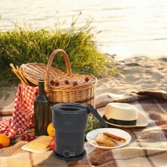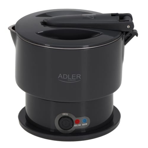 Czajnik silikonowy - turystycznyPojemność max: 0,6 LPojemność min: 0,2 LFunkcja automatycznego podtrzymania temperaturyPłaska grzałka ze stali szlachetnejZabezpieczenie przed gotowaniem bez wodyLampka kontrolnaWytrzymała, składana, silikonowa obudowaSkładana rączkaW komplecie torebka ułatwiająca przechowywanieZintegrowana podstawa Odłączany przewód zasilającyZasilanie: 220-240V ~50/60HzMoc nominalna 600WWymiary produktu: 19,5 x 12,4 x 18,0 cmWymiary złożonego produktu: 14,5 x 12,4 x 9,0 cmKolor: szaryTyp wtyczki: E/F Długość przewodu zasilającego: 74 cm