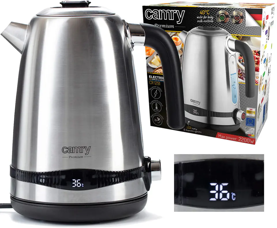 Dziś wybierając czajnik elektryczny, możemy wybierać spośród wielu modeli i form, które znajdą zastosowanie w każdej z kuchni. Stalowy czajnik z wyświetlaczem LCD i regulacją temperatury CAMRY CR 1291 to rozwiązanie dla osób, dla których temperatura spożywanych napojów ma szczególne znaczenie. Takie urządzenie pozwoli szybciej i łatwiej przygotować napary ziołowe czy mieszanki mleka dla maluchów.