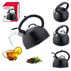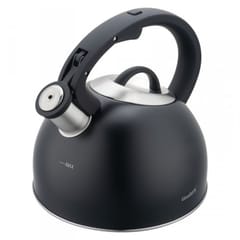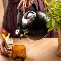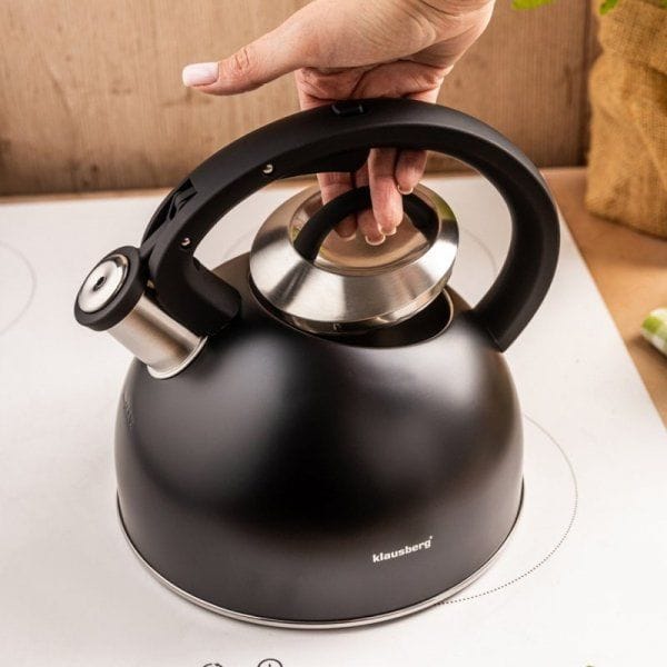 Elegancki czajnik z gwizdkiem w matowym, czarnym kolorze to idealne połączenie nowoczesnego wyglądu i praktyczności. Wykonany ze stali nierdzewnej, doskonale wpisuje się zarówno w stylowe kuchnie, jak i w tradycyjne wnętrza. Jego subtelny design przyciąga wzrok, a solidna konstrukcja zapewnia trwałość na lata.