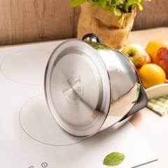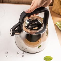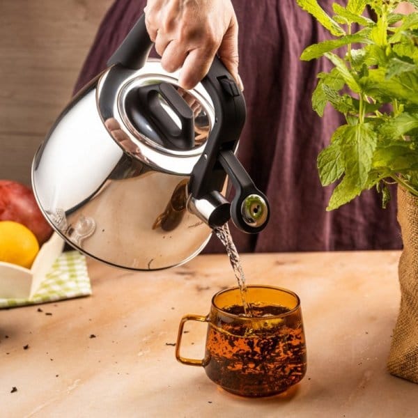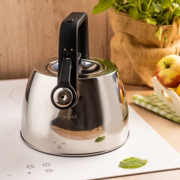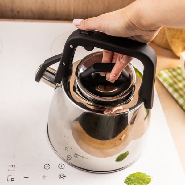 Czajnik tradycyjny z gwizdkiem ze stali nierdzewnej to elegancki i praktyczny dodatek do każdej kuchni. Wykonany z wysokiej jakości stali, wyróżnia się trwałością i nowoczesnym designem. Jego srebrna, błyszcząca powierzchnia w połączeniu z czarnym uchwytem nadaje mu stylowy wygląd pasujący zarówno do wnętrz klasycznych, jak i nowoczesnych.