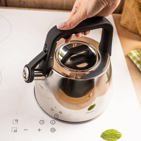 - Przycisk otwierania gwizdka umieszczony w rączce - eliminuje możliwość poparzenia dłoni