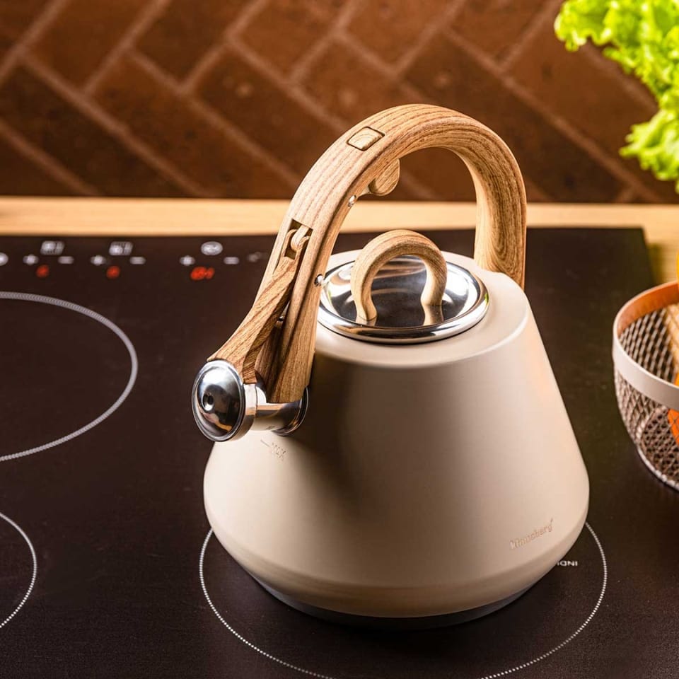Pojemność 2,5 litra pozwala na przygotowanie większej ilości wrzątku za jednym razem, a wbudowany gwizdek informuje o zagotowaniu wody, zwiększając bezpieczeństwo i komfort użytkowania.