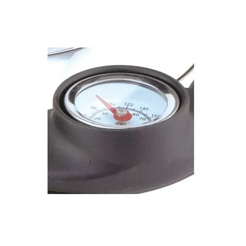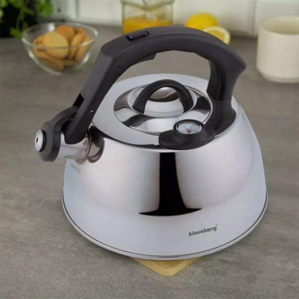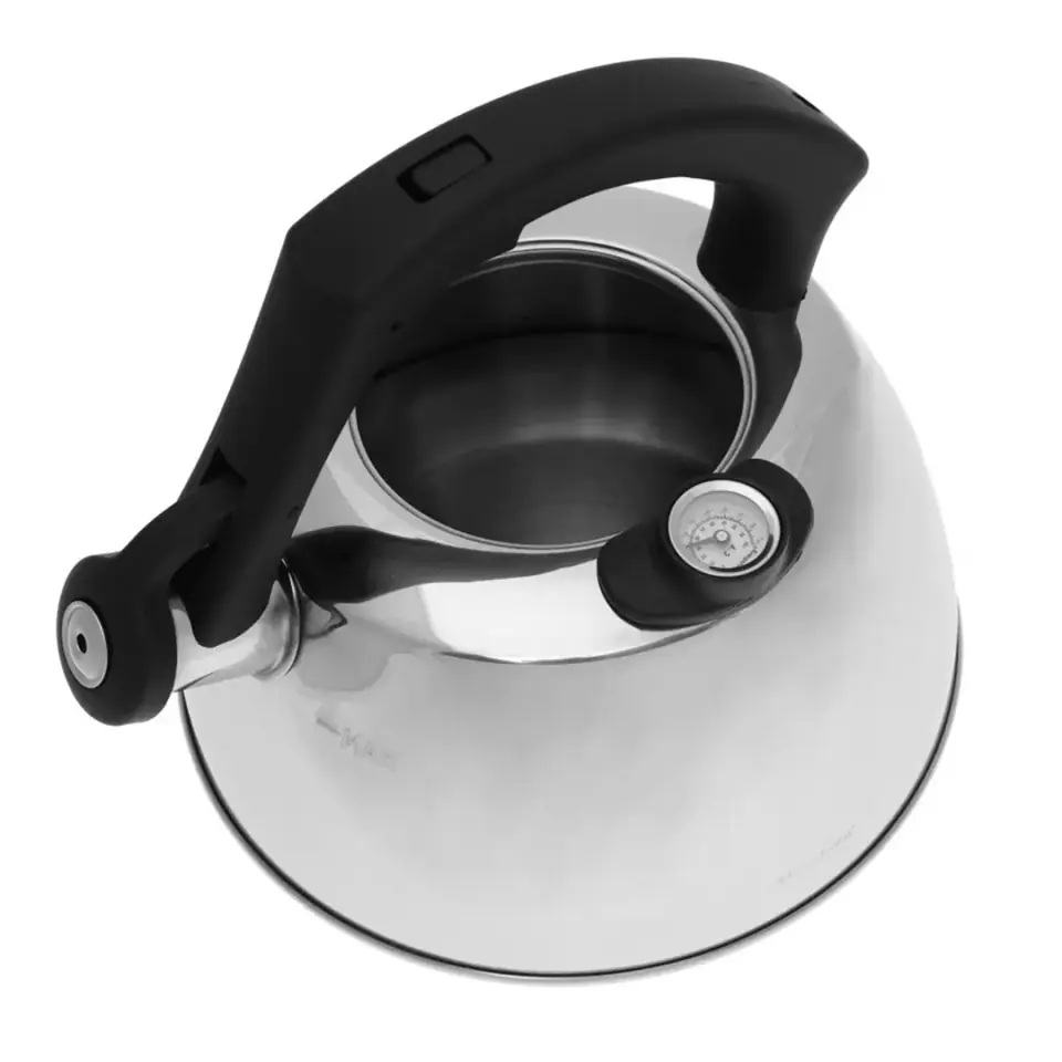 Stalowy czajnik z gwizdkiem wykonany z wysokiej jakości stali nierdzewnej. Wbudowany termometr pozwoli kontrolować temperaturę wody. Stanowi bardzo dekoracyjny element każdej kuchni. Czajnik został skonstruowany tak, by w jak najkrótszym czasie doprowadzić gotowaną wodę do temperatury wrzenia. Szybsze gotowanie pozwala na zaoszczędzenie energii, co za tym idzie oszczędzasz też pieniądze.