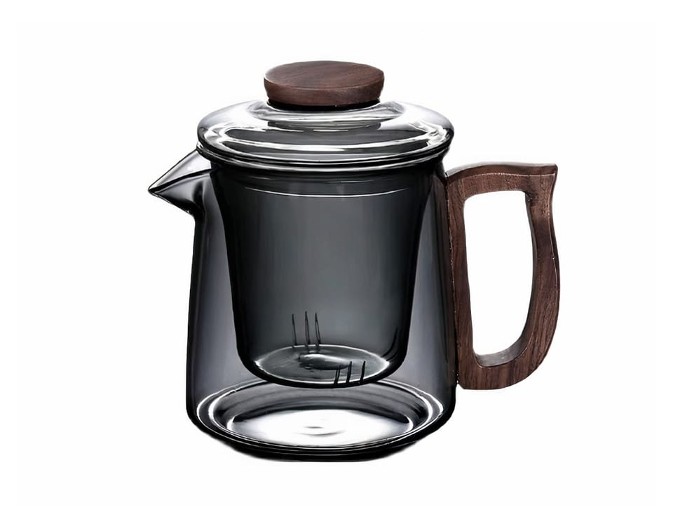 Szklany czajniczek z zaparzaczem. Doskonały na przyrządzenie herbatki na chłodne wieczory.