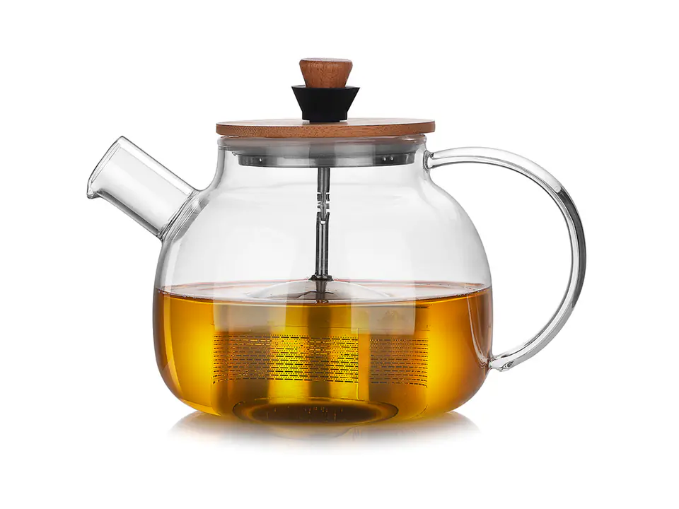 Szklany czajniczek z zaparzaczem. Doskonały na przyrządzenie herbatki na chłodne wieczory.