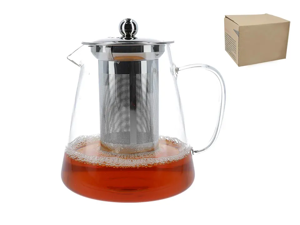 Szklany czajnik z zaparzaczem. Doskonały do przyrządzenia naszej ulubionej herbatki na chłodne wieczory.