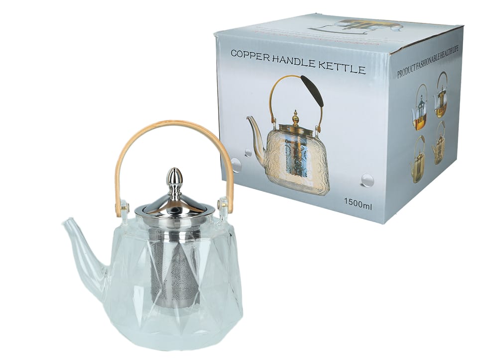 Szklany czajnik z zaparzaczem. Świetny do codziennego użytku, ale również dobrze się prezentuje podając go gościom na stół.