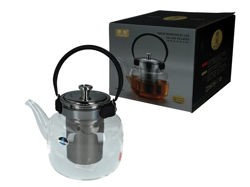Szklany czajnik z zaparzaczem. Świetny do codziennego użytku, ale również dobrze się prezentuje podając go gościom na stół.