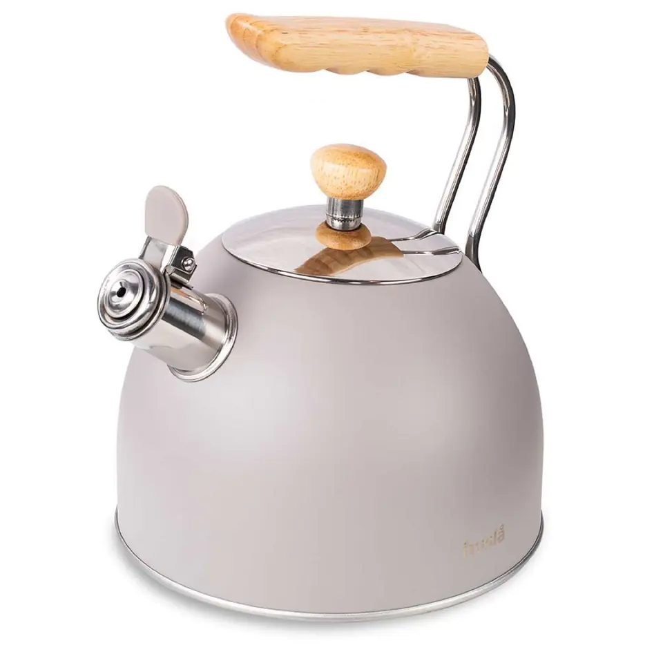 Piękny klasyczny design oraz kolor jaki nadaliśmy naszemu czajnikowi sprawia, iż doskonale się czuje w każdej kuchni. Dodatkowo rączka oraz pochwyt pokrywki wykonane z twardego drewna kauczukowego nadają mu naturalnego ciepła i przykuwają uwagę każdego. Dostępny w kolorze ciepłym szarym. W ofercie znajdziecie Państwo również czajnik w kolorze czarnym.