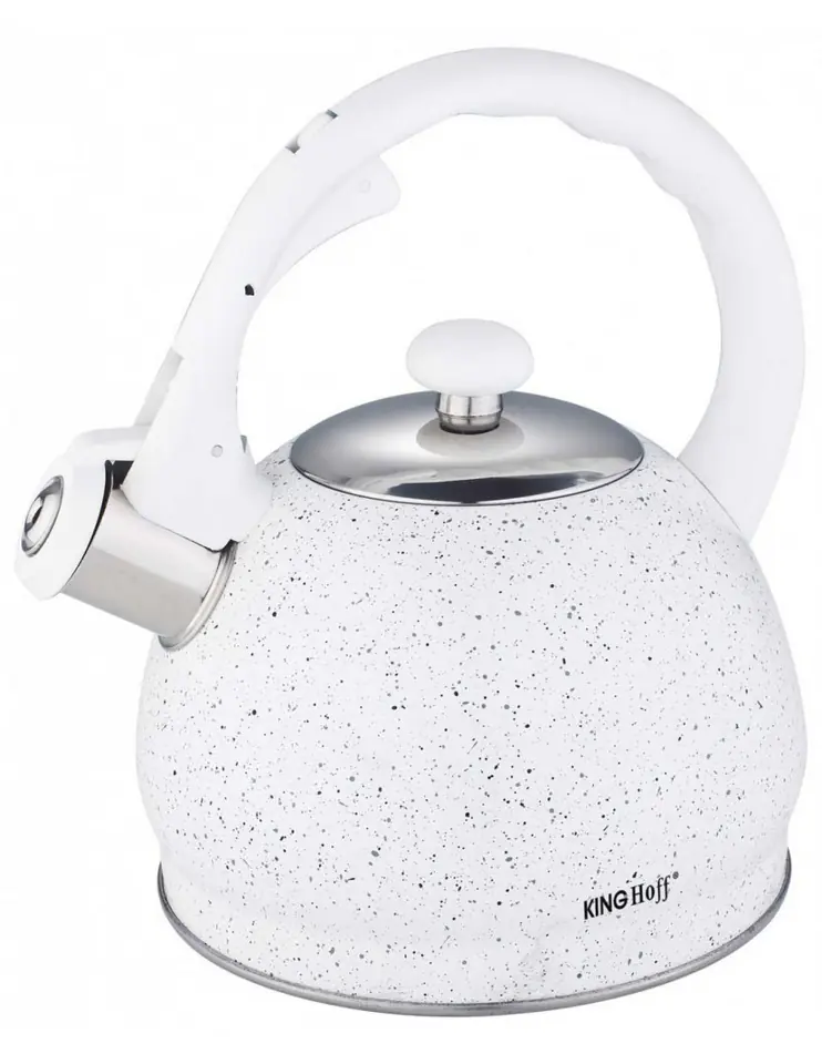 Czajnik wykonany jest ze stali nierdzewnej pokrytej powłoką marmurową w kolorze białym,