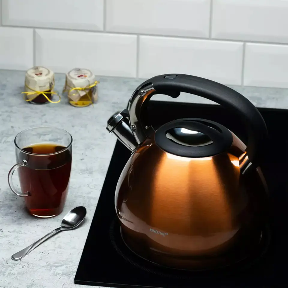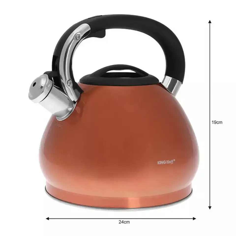 Czajnik stalowy 3.4L wykonany z wysokiej jakości stali nierdzewnej 18/10 lakierowanej na kolor miedziany. Czajnik stanowi niewątpliwą ozdobę każdej kuchni i przykuwa uwagę swoją formą i wykończeniem.