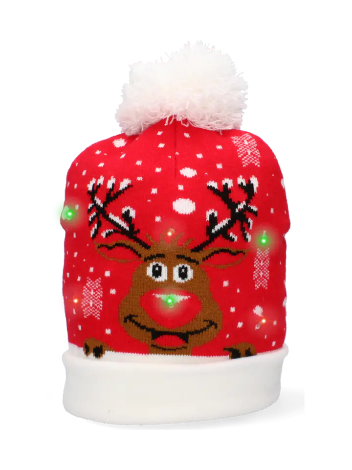 Czapka świąteczna świecąca LED czerwona RENIFER