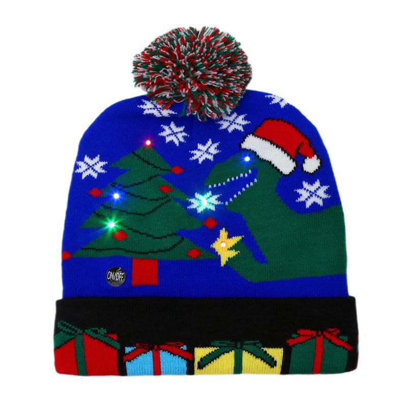 Czapka świąteczna świecąca LED z pomponem, DINOZAUR Świąteczny CZ53