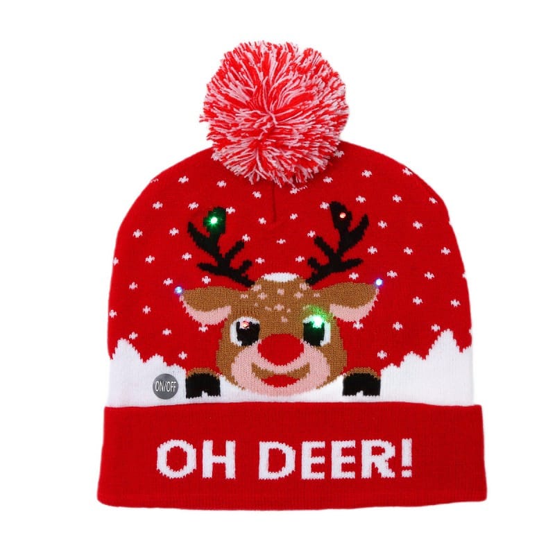 Czapka świąteczna świecąca LED z pomponem, renifer Boże Narodzenie CZ50
