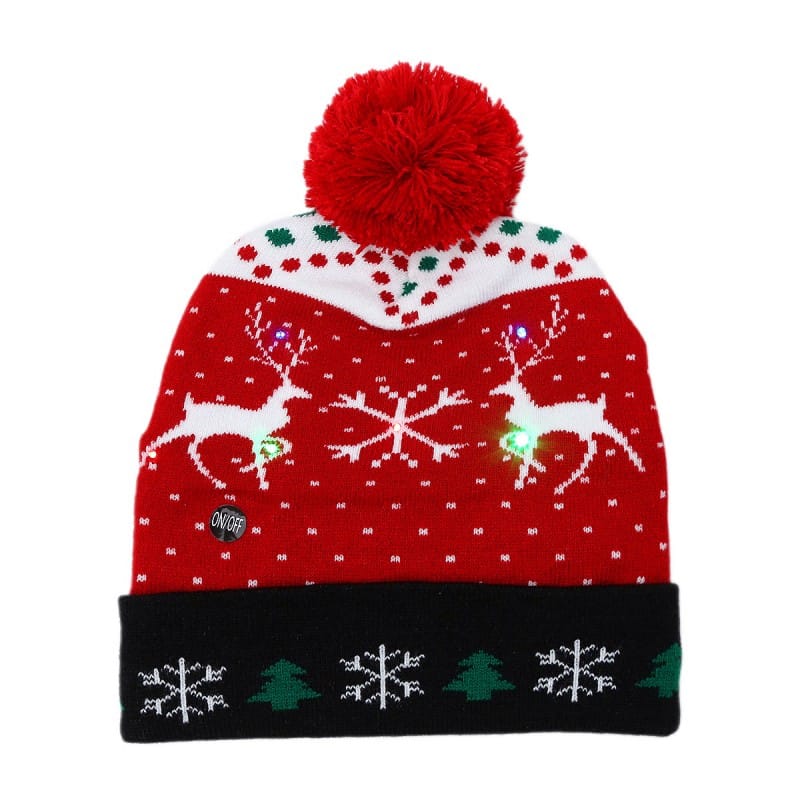 Czapka świąteczna świecąca LED z pomponem, RENIFERY Boże Narodzenie CZ51