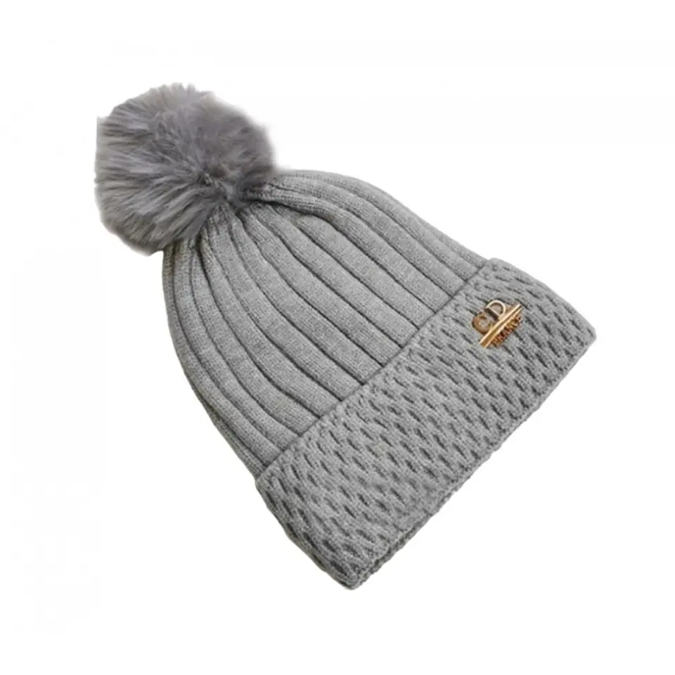 Czapka zimowa dzianinowa, miękka i ciepła, z pomponem i naszywką, szara Bardzo ciepła i elastyczna czapkaIdealna do zimowych stylizacji Świetnie sprawdza się jako modny dodatek lubokrycie głowy podczas zimowych aktywności fizycznych Rozmiar: uniwersalnySkład: Akryl 100%