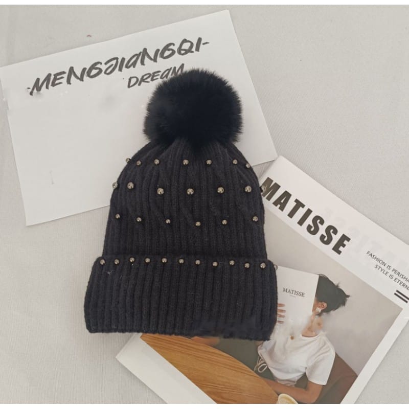 Czapka zimowa dzianinowa, miękka i ciepła, z pomponem i perełkami Bardzo ciepła i elastyczna czapkaIdealna do zimowych stylizacji Świetnie sprawdza się jako modny dodatek lubokrycie głowy podczas zimowych aktywności fizycznych Rozmiar: uniwersalny Skład:Akryl 100%