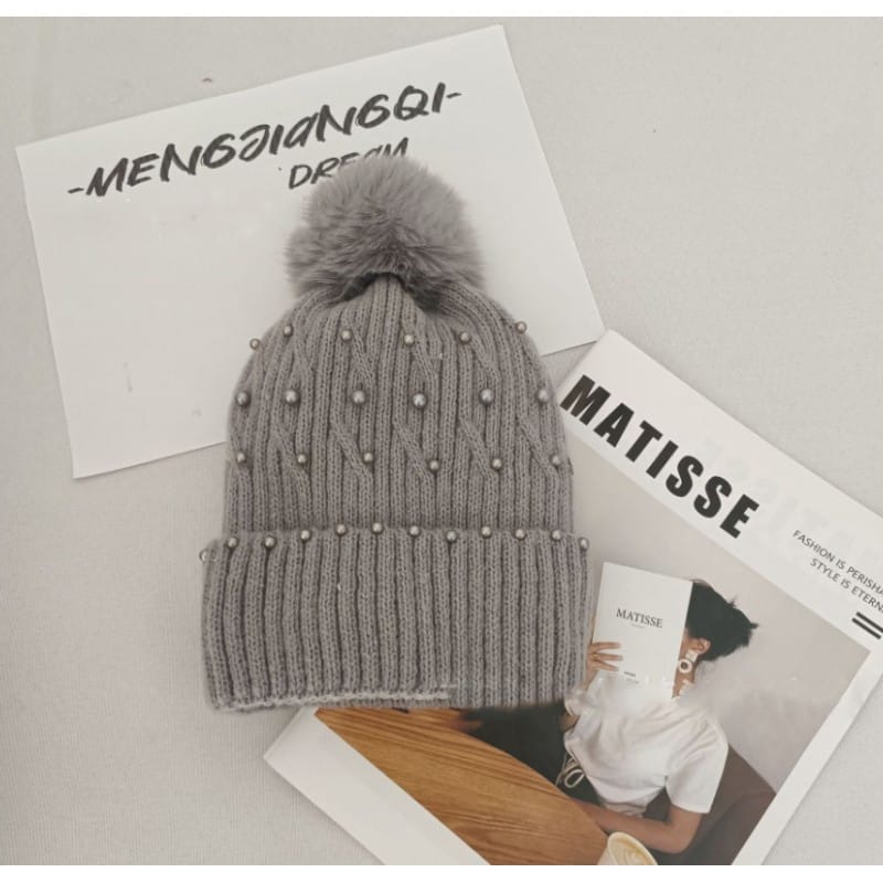 Czapka zimowa dzianinowa, miękka i ciepła, z pomponem i perełkami Bardzo ciepła i elastyczna czapkaIdealna do zimowych stylizacji Świetnie sprawdza się jako modny dodatek lubokrycie głowy podczas zimowych aktywności fizycznych Rozmiar: uniwersalny Skład:Akryl 100%