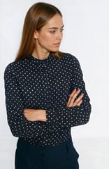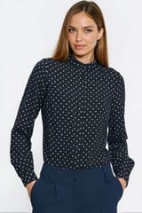 Czarna bluzka na stójce w groszki - B208 kolor czarny, rozmiar 34
