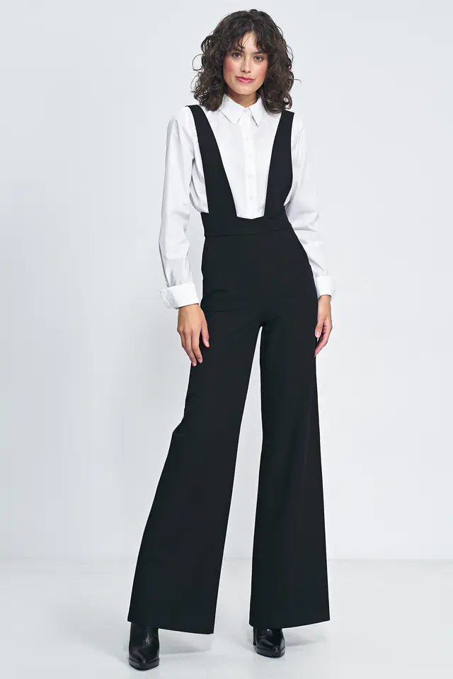Must-have sezonu! Wyjątkowy kombinezon z wysokim stanem i szelkami to absolutny hit kolekcji! Fason inspirowany modą pochodzącą z poprzednich dekad został połączony z mieszanką nowoczesnych tkanin i uniwersalnym wzorem. Model posiada szerokie nogawki oraz praktyczne kieszenie. Szelki są zapinane z tyłu na dwa guziki przy jednej szelce. Skład: 74,8% poliester, 23,1% wiskoza, 2,1% elastan. Modelka na zdjęciu ma 177 cm wzrostu i ma na sobie rozmiar 36.