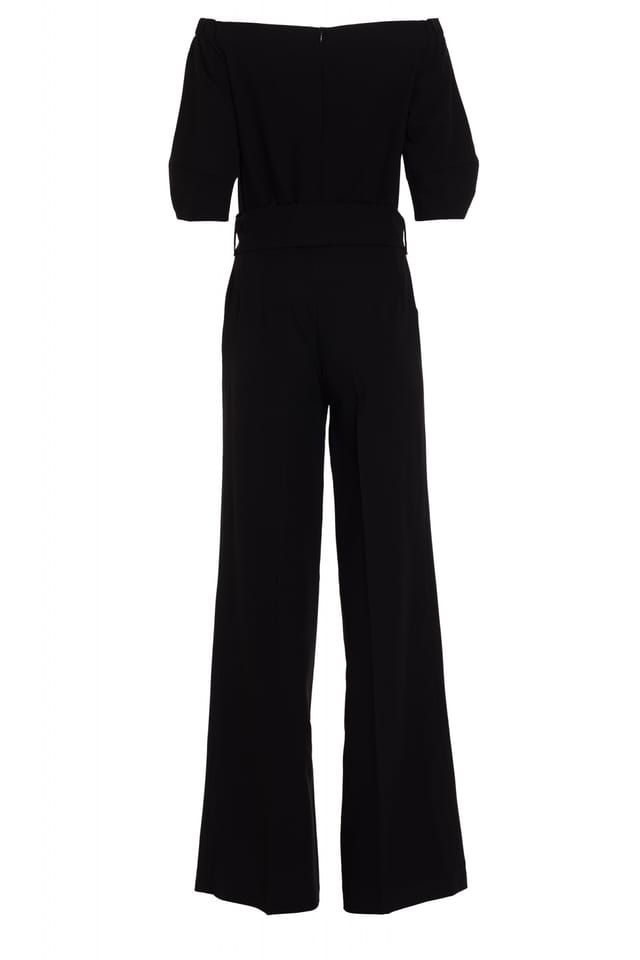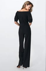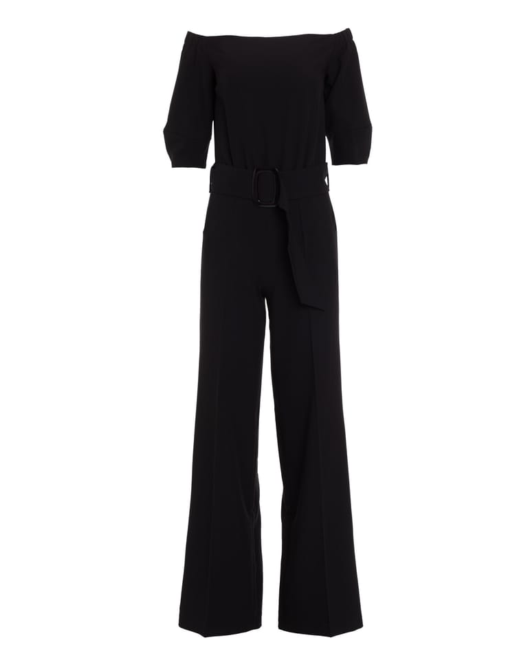 Czarny kombinezon damski to doskonała alternatywa dla klasycznych stylizacji biurowych. Zmysłowy fason cold-shoulder pięknie eksponuje linię ramion, a szeroki pas z efektowną klamrą efektownie podkreśla talię. Przyjemny w dotyku materiał, z domieszką wiskozy, zapewnia wysoki komfort noszenia. Skład: 75% poliester, 23% wiskoza, 2% elastan Modelka na zdjęciu ma 176 cm wzrostu i ma na sobie rozmiar 36.