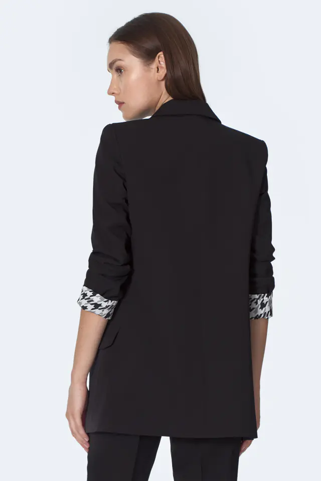 Dobrze skrojona marynarka to podstawa w garderobie każdej z Nas. Prosty w swym kroju żakiet idealnie uzupełni Twój look do pracy oraz dzięki mankietom we wzór nada charakteru każdej stylizacji "po godzinach". To absolutny must-have sezonu jesień - zima 2020! Marynarka wraz ze spodniami w ten sam wzór co podszewka w mankietach, stworzy niebanalny zestaw. Skład: 74,8% poliester, 23,1% wiskoza, 2,1% elastan. Modelka na zdjęciu ma 177 cm wzrostu i ma na sobie rozmiar 36.