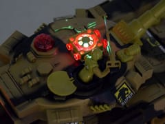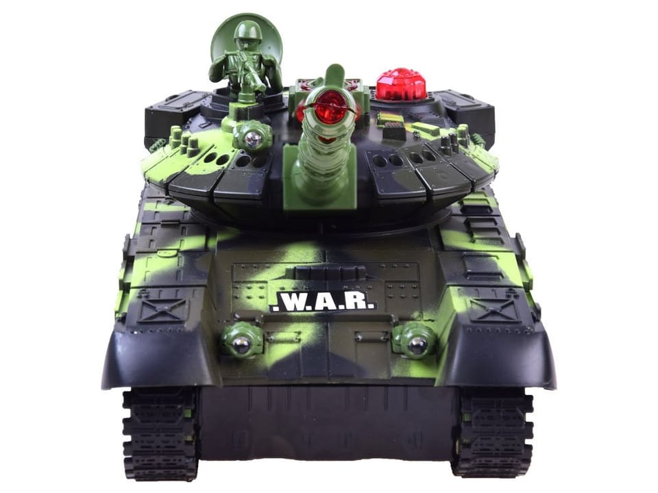Obrotowa wieżyczka może obracać się o 180 stopni w każdym z kierunków, co w praktyce daje możliwość prowadzenia ognia w zakresie 360 stopni. Czołg wyposażony jest w efektowne oświetlenie, które rewelacyjnie wygląda w ciemniejszym pomieszczeniu. Pojazd posiada otwierany właz w wieżyczce, w którym możemy umieścić załączonego czołgistę i karabin maszynowy. Czołg zasilany jest dołączonym akumulatorem co wydatnie obniża koszty eksploatacji.