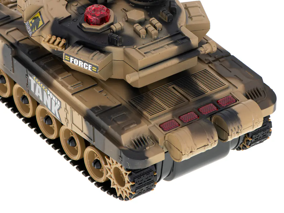 Ogromna moc jaką dysponuje sprawia, że nie ma dla niego miejsc niezdobytych a efekty świetlne i dźwiękowe, doskonale imitujące prawdziwy czołg pobudzają fantazje i intensyfikują zabawę.