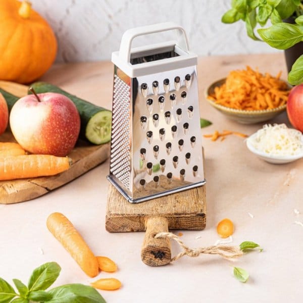 Tarka kuchenna KINGHoff KH-1986 to praktyczne i trwałe akcesorium, które sprawdzi się zarówno w domowej kuchni, jak i w restauracjach czy stołówkach. Dzięki czterem różnym powierzchniom do tarcia z łatwością przygotujesz warzywa, sery, owoce czy czekoladę, dopasowując efekt do swoich potrzeb. Cechy produktu: 4 funkcjonalne strony do tarcia – od drobnego po grube wiórki Wykonana z wysokiej jakości stali nierdzewnej – odporna na rdzę i uszkodzenia Trwałe i ostre ostrza – zapewniają szybkie i efektywne tarcie Wygodny uchwyt z tworzywa – komfortowe i bezpieczne użytkowanie Stabilna konstrukcja – ułatwia pracę nawet przy większej ilości składników Kompaktowy rozmiar – łatwe przechowywanie w kuchennej szafce lub szufladzie Wysokość: 16 cm Podstawa: 8,8 × 6,3 cm Tarka KINGHoff KH-1986 to doskonały wybór dla każdego, kto ceni funkcjonalność i solidność. Idealnie sprawdzi się w codziennym gotowaniu, przyspieszając przygotowanie wielu potraw. ...