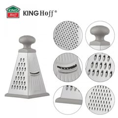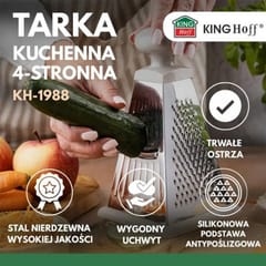 Praktyczna i solidna tarka czterostronna z serii KINGHoff to niezastąpione akcesorium w każdej kuchni. Dzięki ostrym i trwałym krawędziom ze stali nierdzewnej umożliwia szybkie i precyzyjne ścieranie warzyw, owoców, serów czy czekolady. Wyposażona w silikonową, antypoślizgową podstawę gwarantuje stabilność podczas pracy, a ergonomiczny uchwyt zapewnia komfort i bezpieczeństwo użytkowania.